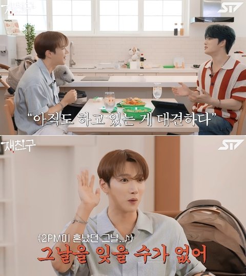 두 사람은 음악방송에서 처음 만난 이야기도 풀었다. 김재중은 "난 정말 꼰대였다"고 밝히며 "우리 앞에서 쭈뼛쭈뼛 2PM이 인사해서 신화 이민우 형이 2PM을 따로 불렀을 것"이라고 말했다.