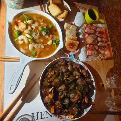 이땐 크리스마스여서 분위기좀 내보려고 찹스테이크,감바스,팽이버섯베이컨말이 만들었어요