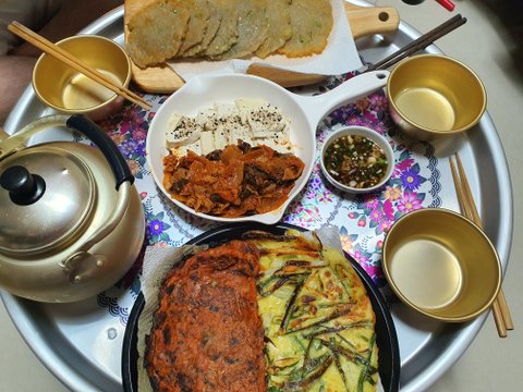 이때 비가 많이 내리길래 감자전이랑 도토리묵무침, 고추장찌개 해서 막걸리랑 먹었어요ㅎㅎ