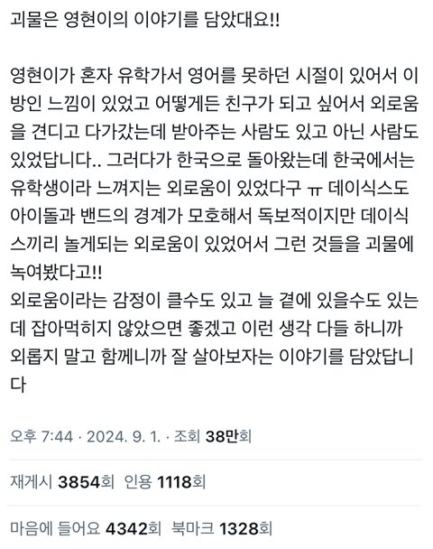 데이식스에 관심 있는 사람들은 한번 읽어줘.