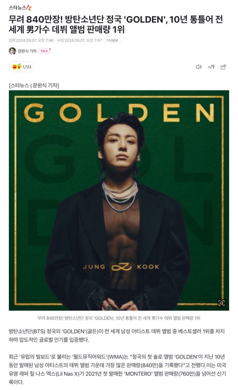 앨판량 840만장 ㄷㄷㄷ 지난 10년간 전 세계 남성 아티스트 데뷔 앨범 중 베스트셀러 1위
