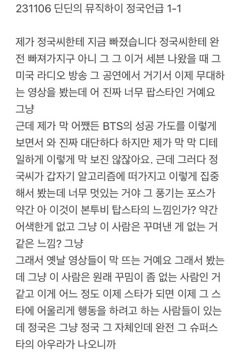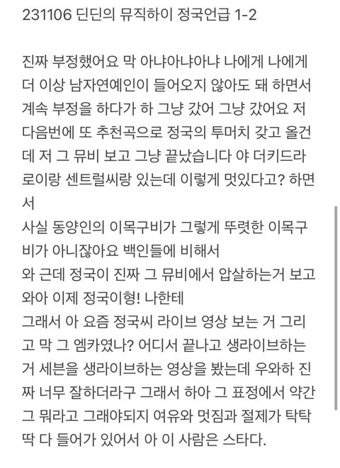 딘딘의 정국사랑 지금봤는데 개진심이네ㅋㅋㅋㅋ