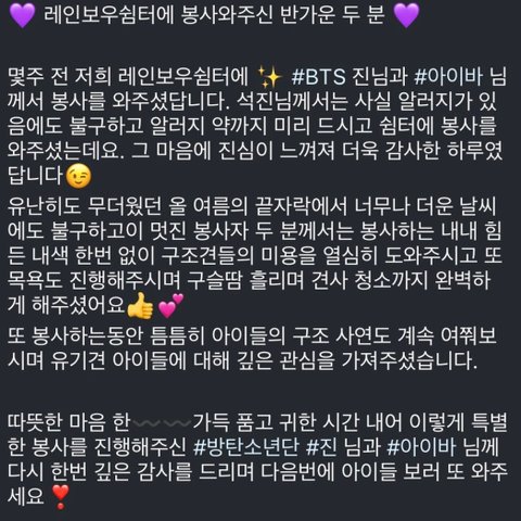 방탄 진 유기견 봉사