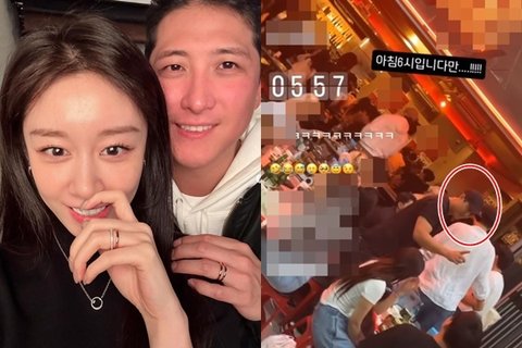 왼쪽=지연과 황재균, 오른쪽=주점에서 포착된 황재균(소셜미디어)