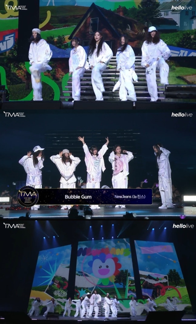 뉴진스. 사진ㅣ2024 TMA 방송 캡처에스파와 뉴진스에 이어 있지의 활약도 돋보였다. 있지는 ‘올해의 아티스트’, ‘월드 베스트 퍼포머’ 상을 거머쥐으며 걸그룹 천하 파워에 힘을 보탰다.더팩트 창간 10주년을 맞아 ‘더팩트 뮤직 어워즈’ 역대 최초로 해외에서 진행되는 이번 시상식은 전 세계의 팬과 다 같이 즐기는 진정한 글로벌 케이팝 축제로 기대를 모았다. 이번 시상식은 일본 방송 채널 TBS에서 생중계되고 레미노에서 온라인 실시간 스트리밍됐다.
