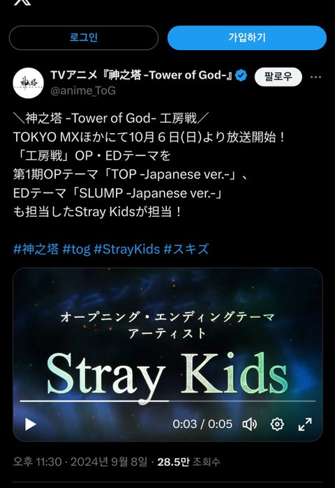 또다시 신의탑 오프닝과 엔딩송을 맡게 된 스키즈