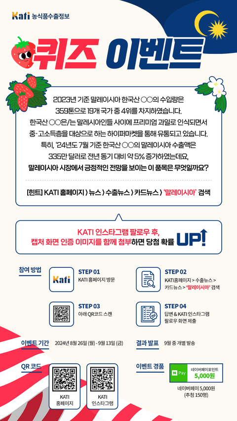 농식품수출정보 KATI가 준비한 퀴즈이벤트에 참여하세요