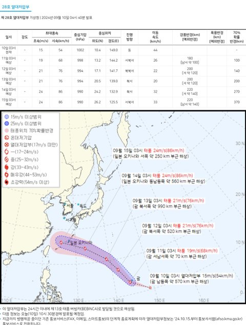 매우 강한 세력으로 발달해 추석 당일 우리나라 강타 예상