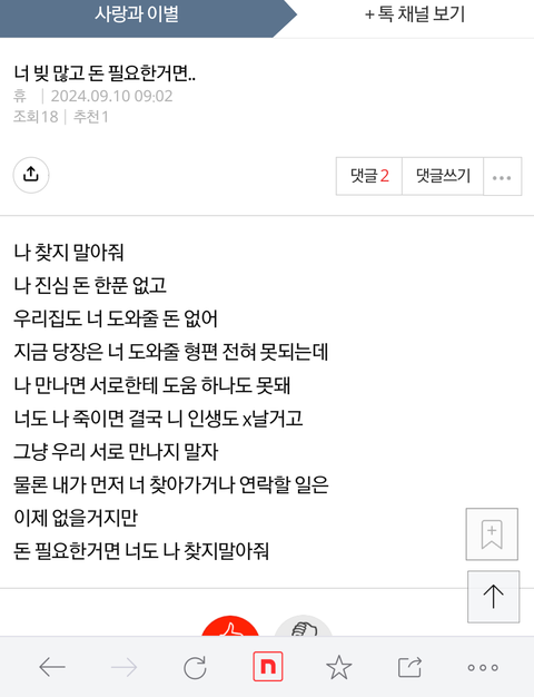 쓰니가 이해 못 하고 쪼잔하고 어쩌고 저쩌고 다 이해 한다 치자고 근데 웬 반지? 어째 쓰니가 남자 보는 눈이 없는 것 같은 느낌은 뭐지?