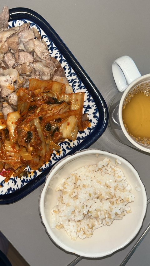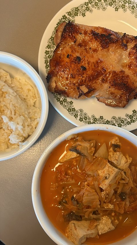 이날도 김치찌개를 먹었네요!! 저 고기는 치킨 스테이크에요! 냉동 식품인데 처음부터 저렇게 조금 태워져 있어서 약불에 충분히 해동한 후에 먹으면 돼요!