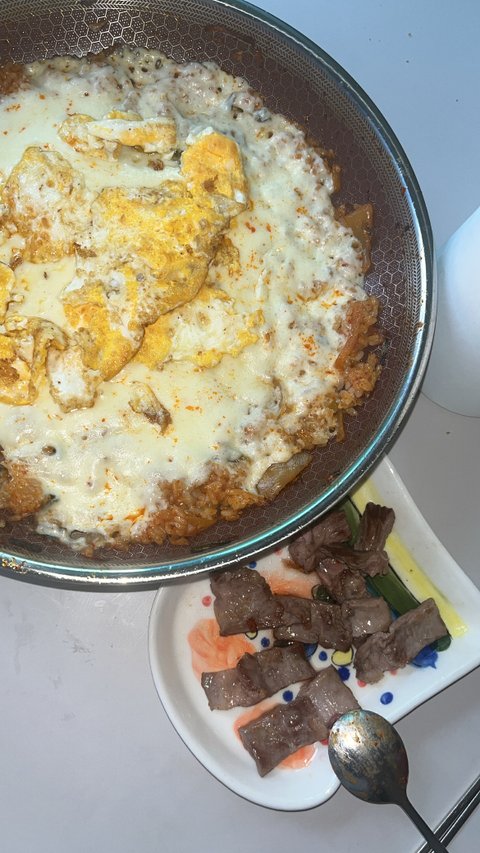 이건 치즈 김치 볶음밥에 갈매기살인 것 같아요! 계란이 왜 저렇냐면 노른자 비린내를 진짜 못 먹어서 반숙도 못 먹어요… 물론 육회에 있는 노른자도 못 먹구요…