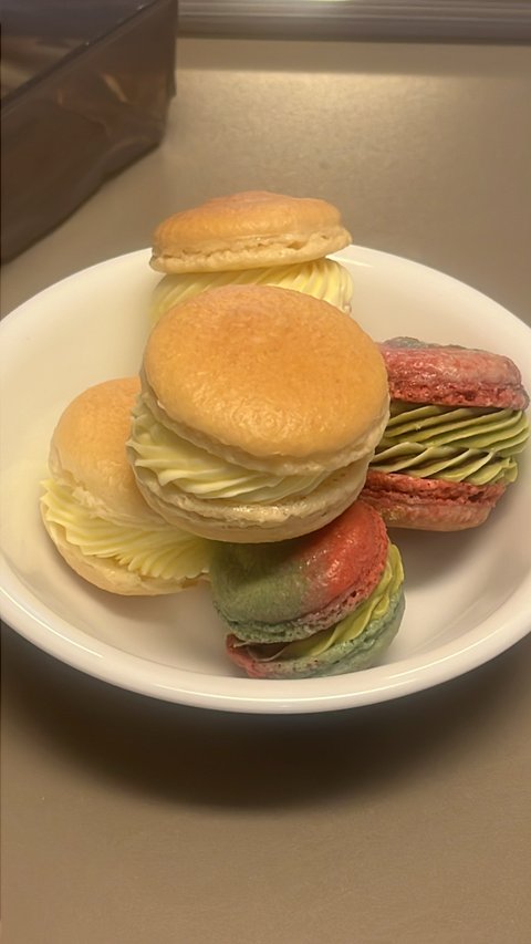 제 인생 첫 마카롱이에요!! 혼자 만들었고 대략 3~4시간 정도 걸린 것 같아요! 처음치곤 너무 잘 만들어서 되게 맛있게 가족들과 다함께 먹었던 기억이 나네요