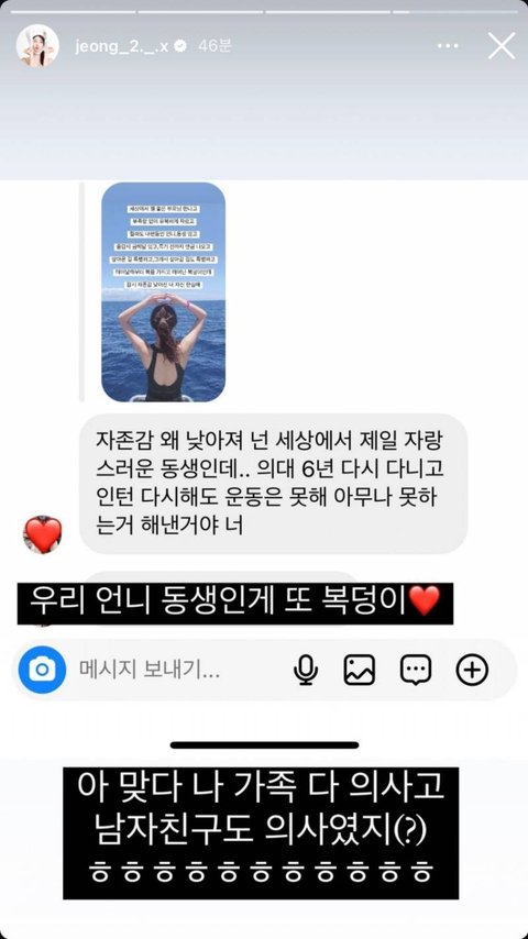 딴건 다 그럴 수 있지싶은데 마지막에 아 맞다 나 가족 다 의사고 남자친구도 의사였지 이게 좀 엥스러움 남자친구랑 가족이 의사지 본인이 의사인게 아니잖아요…ㅋㅋㅋ 노력은 다른사람이 했는데 왜 자존감이 본인이 채움ㅋㅋㅋㅋ