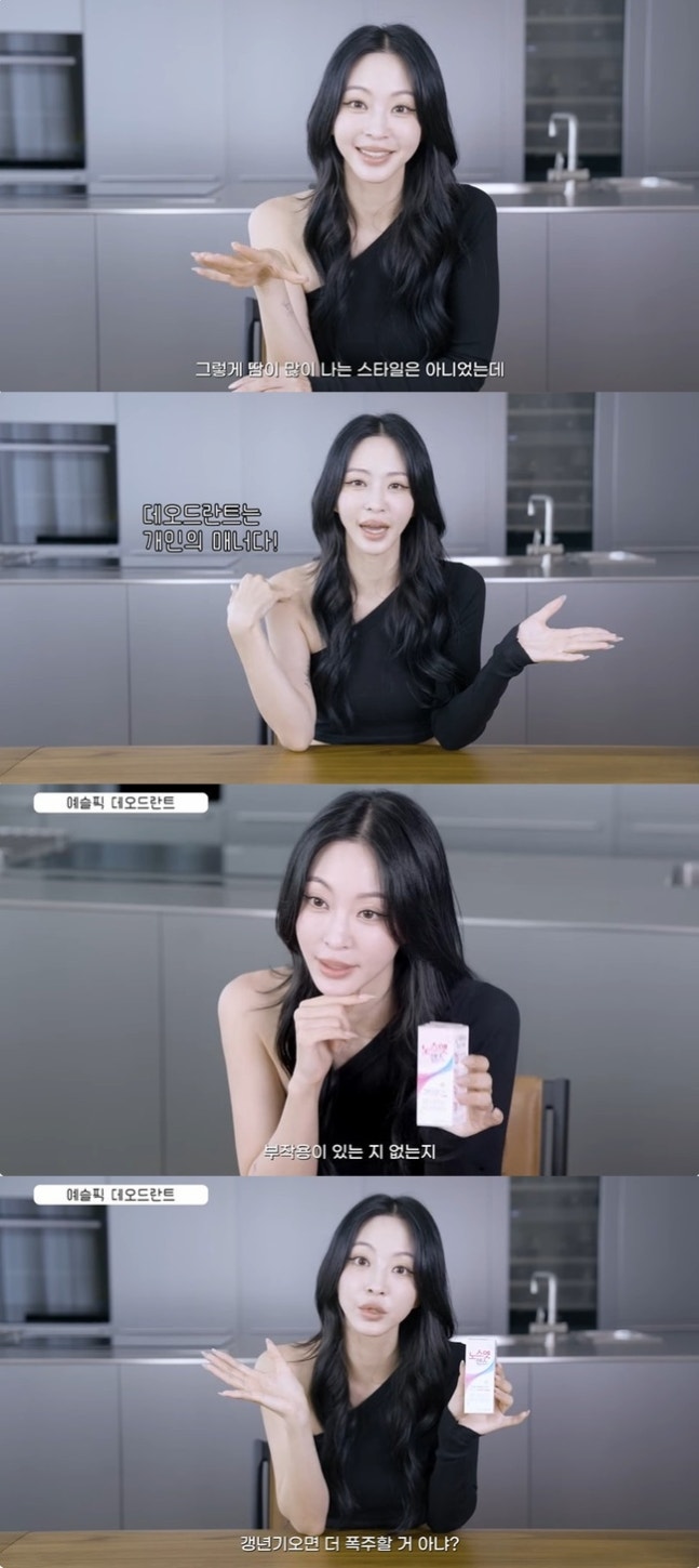 한예슬 is 캡처한예슬은 직접 사용해 본 여러 데오드란트에 이어 선물 받은 다한증 치료제를 꺼냈다. 그는 "리뷰를 읽어보니까 이걸 사용하면 진짜 땀이 안 난다더라. 너무 신기해서 사용해 보려 한다. 이게 말이 되냐. 겨드랑이 땀 폭주로 고생하는 우리 이쁜이들(구독자명)을 위한 너무 좋은 아이템인 것 같다. 내가 한번 사용해 보고 결과를 알려주겠다. 부작용이 있는지 없는지. 진짜 땀이 하나도 안 나는지"라고 궁금해했다.