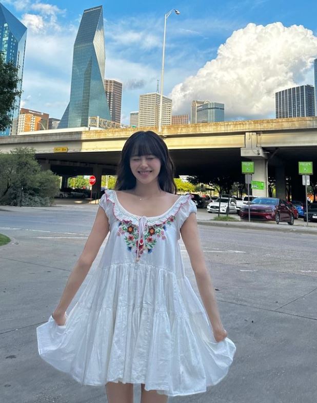 사진 속 츄는 흰색 바탕에 꽃무늬가 들어간 원피스를 입고 포즈를 취했다. 특히 특유의 사랑스러운 미소가 눈길을 끈다.