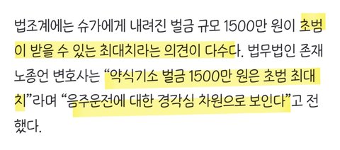 요새 자꾸 사람 안쳤잖아 앤나 혼자 자빠진건데 왜 얘한테만 엄중한 잣대 들이미냐고 쉴드치는데 쟤를 위하면 제발 가만있어ㅋㅋㅋㅋ왜이렇게 다들 무식한 맘충처럼 굴어? 음주운전으로 벌금 1500나올정도면 죄가 무거운거 맞다 혈중알콜농도봐라 사람을 안쳐서 저새기땜에 누구 하나 안죽어서 다행인거야 미친 아줌마들아