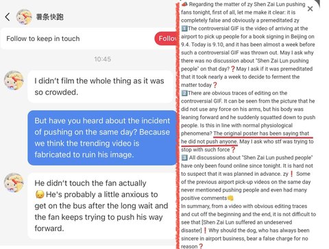앙딱정 웨이보에 원본 올린 사람이 누구도 민 적 없다 함(오) ╋ 같이 있던 다른 분이 터치한 걸 본 적 없다며 또 다른 영상(제이크가 정원이 손으로 보호하는 영상) 업로드 함(왼)