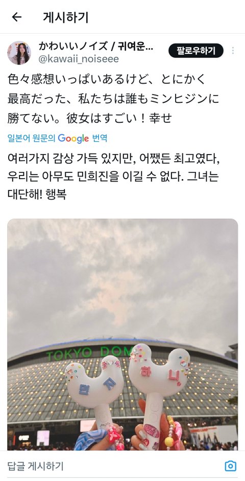 심지어 뉴진스 팬미팅도 양일로 다 갔다오고 민희진대퓨님 찬양까지 하는;
