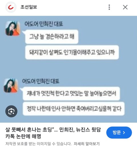 새대표입장에선 새로 부임했으니 뉴진스랑 인사해야지^^ 했는데