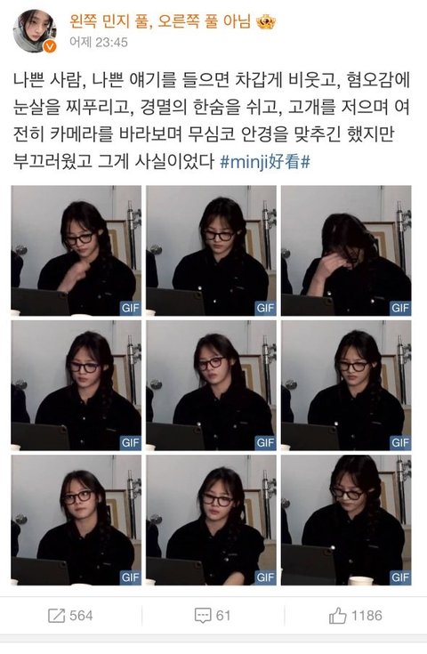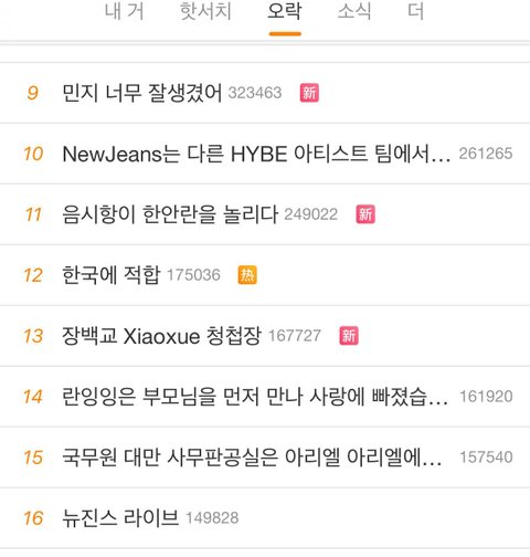어제 뉴진스 라이브 여파로 실시간 웨이보에도 떴음 근데 순위가 16위 '뉴진스 라이브' 9위 '민지 잘생김'