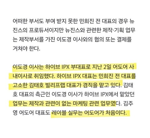 어도어 괴롭히던 빌리프랩 사내이사들이 어도어 경영한다고..? 게다가 원래 비슷한 직무도 아닌 사람들이?
