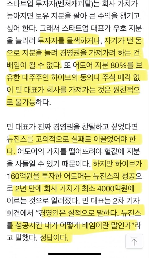 아 그리고 투자금 다 갚았다고 몇십배로 갚았으니 된거 아니냐 하는데이건 진짜 사회생활 못해본 티가 나는거임아니 회사 시스템이 있는데 회사에 이익이 생기면 그럼 회사비용내고 정산 받고 그다음에 지분에 따라 나누고 하는 그런 절차가 있는거고 투자를 많이 했으면 그만큼 배당을 가져 가는 거고 성과가 있으면 성과를 받는거야 이게 상식아닌가? 뉴진스 혼자 고생했나? 그 스텝들 감독 프로듀서 다 고생한 거 아냐 그거 하이브 인프라 아냐?