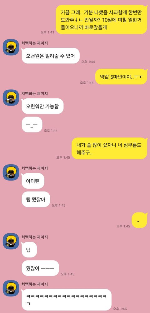 약값 핑계로 달라고 했는데 이러네요