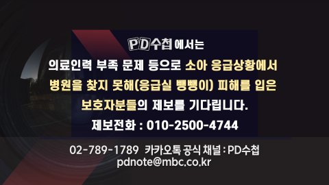 <PD수첩>에서는 소아 응급상황에서 병원을 찾지 못해(응급실 뺑뺑이) 피해를 입은 보호자분의 제보를 기다립니다.