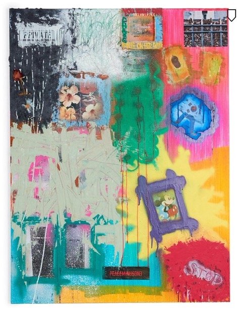 이 작품 실제로 봤는데 왼쪽 위에 장미꽃도 실제 장미꽃 드라이해서 붙인거고 맨 위에 네모도 그린게 아니라 실제 작은 액자를 붙인거더라