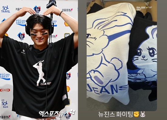 비단 연예계뿐만 아니다. KIA타이거즈 김도영은 뉴진스를 상징하는 토끼 캐릭터가 그려진 티셔츠를 인증하며 "뉴진스 파이팅"이라고 했다.