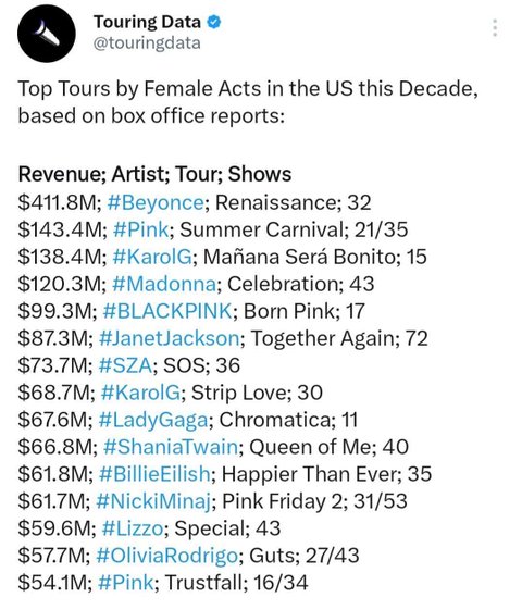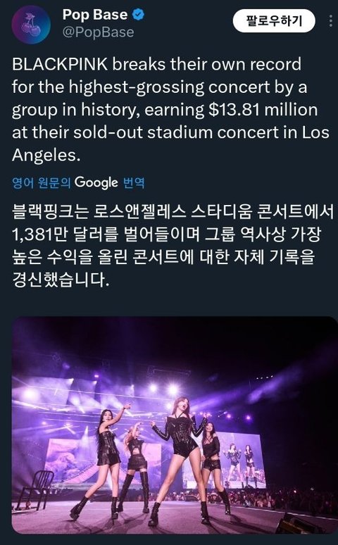 미국 탑여가수들 즐비한 이 라인업에 블핑이 있네 새삼 대단하다ㅋㅋㅋㅋ 17회에 1300억 티켓 매출 미친듯 블랙핑크 블핑 지수 제니 리사 로제
