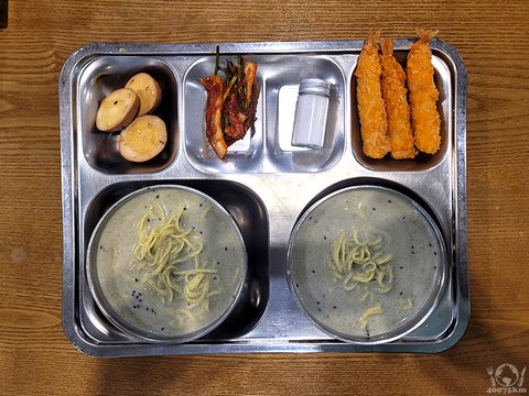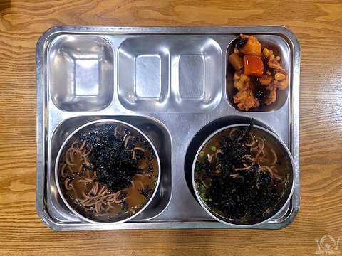 다른 밥과 반찬은 패스하고 모밀국수를 곱배기로 담습니다.