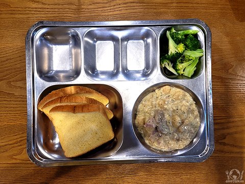 그 대신 도서관 수업 때 쓰고 남은 식빵을 들고 식당으로 내려옵니다.