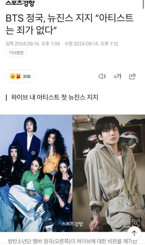 본인 버니즈인데 지금 이 시기에 샤라웃 너무 감사할 뿐이고 아티스트는 죄가 없다라는 저 말이 뉴진스뿐 아니라 모든 하이브 돌들에게 해당되는 말임 . 제발 아이돌들은 욕하지 말자 진짜 아무 잘못이 없어 회사가 잘못한 거지