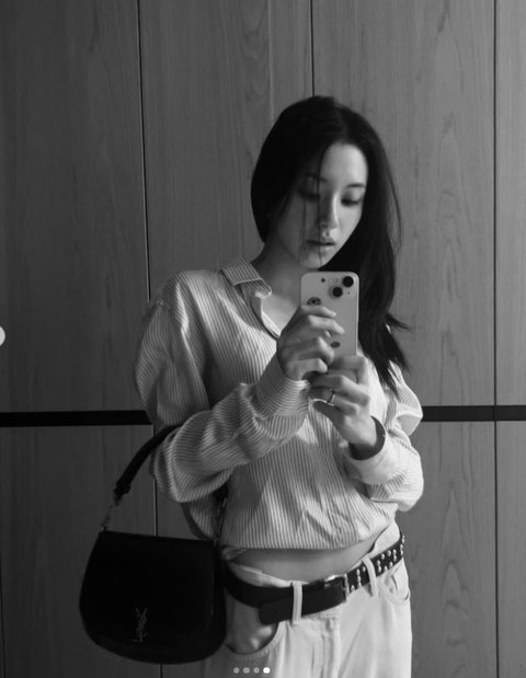 공개된 사진은 그의 셀카. 스트라이프 셔츠와 흰색 바지를 매치한 스타일링을 완벽하게 소화한 채영은 가을에 걸맞는 시크한 분위기를 자랑해 시선을 모은다.