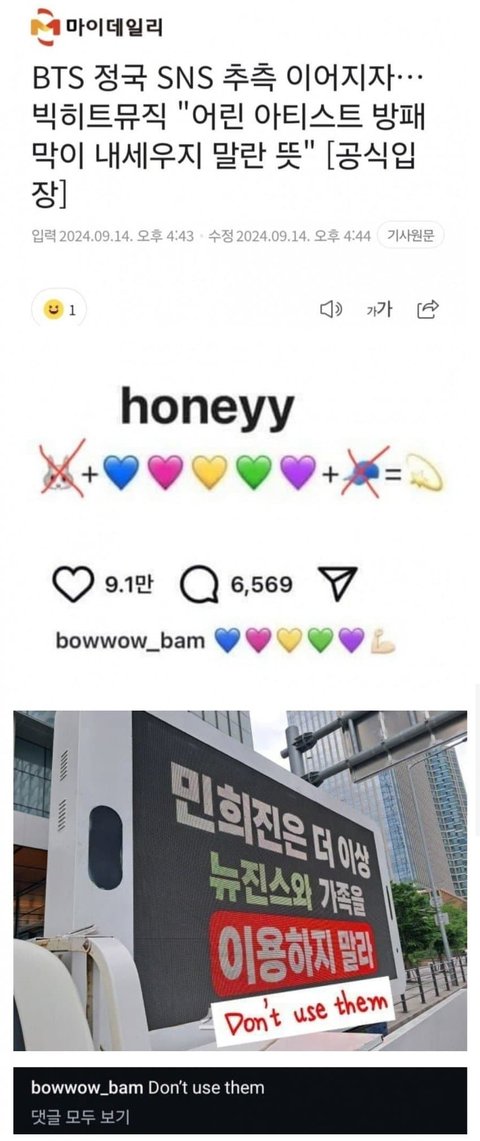 민희진, 민천지들은 뉴진스 이용하지 말래