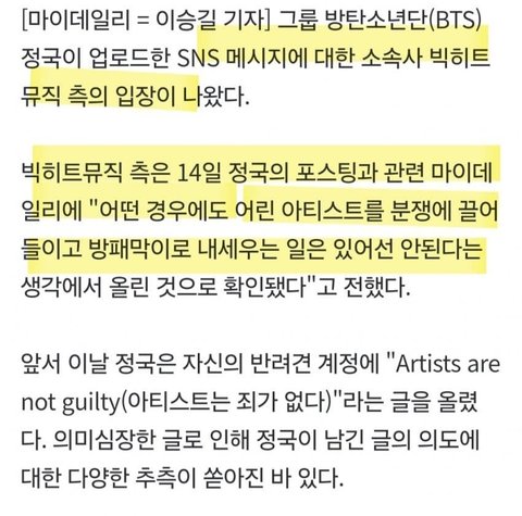 빅히트 통해서 공식 입장 냈네 ;;