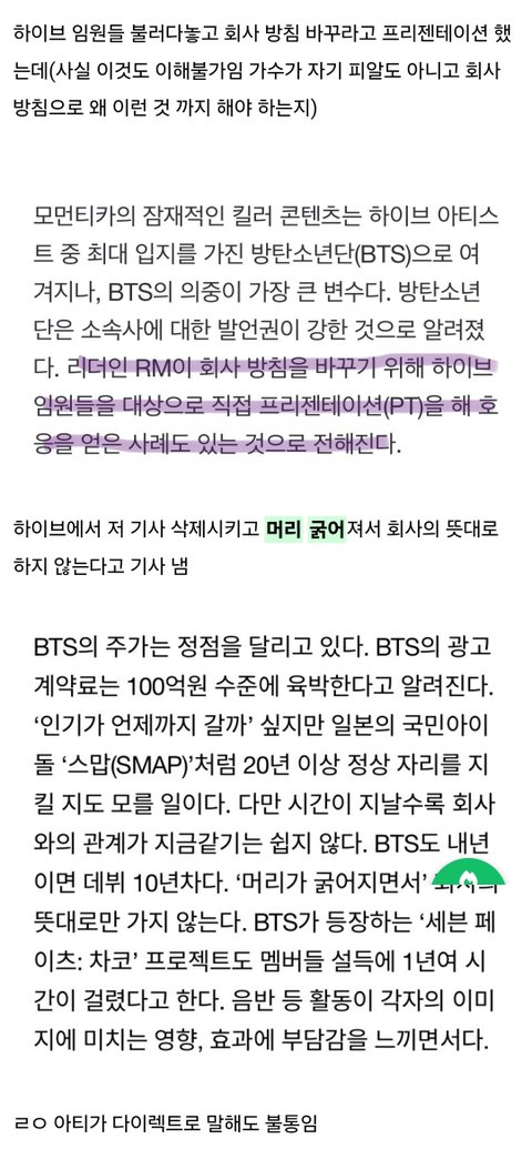 방탄 알엠 피피티 발표 했다고 머리 굵어졌다고 언플한 하이브