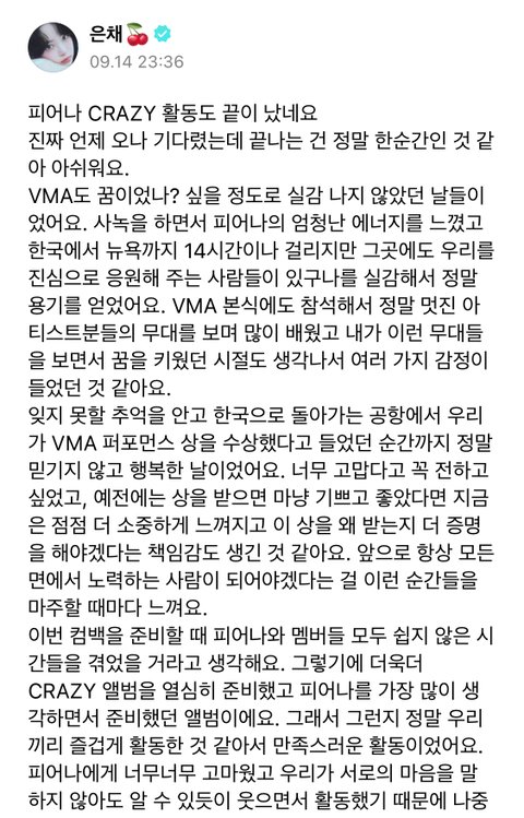 홍은채 위버스 글