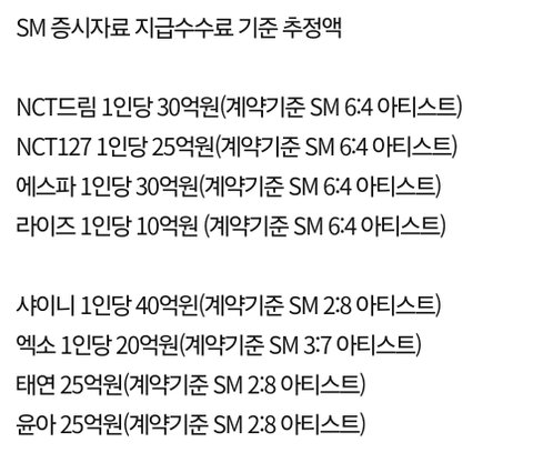 특히 샤이니같이 멤버 적은데 정산비율 완전갑에 각자 개인투어돌고 개인광고도 찍어야 저렇게 버는듯ㅇㅇ