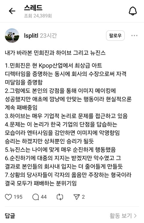 결국은 민희진 방시혁 둘의 패배다