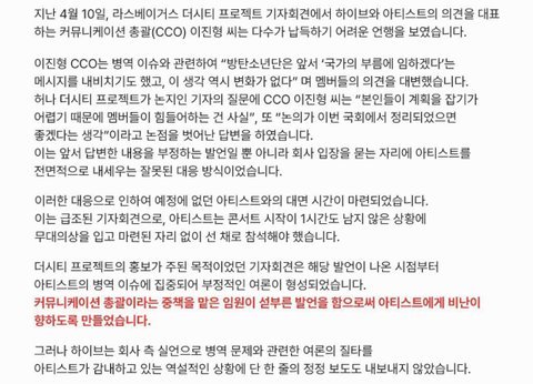 7. 하이브 임원 보호하기 위해 아티스트 방패삼기