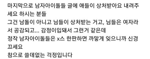 나도남돌좋아하는데 솔직히 이런 생각 함..ㅋㅋ 그라도 좋은걸 어쩌겠어ㅠ