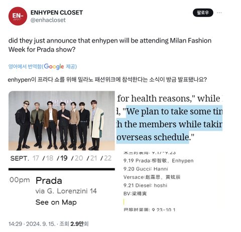 애들 프라다쇼 까지 스케줄 바쁘네