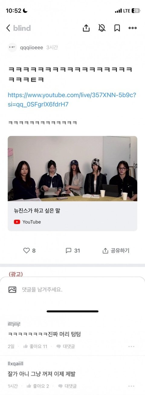 하이브 직원들 블라인드에서 뉴진스 개무시하노 ㄷㄷ