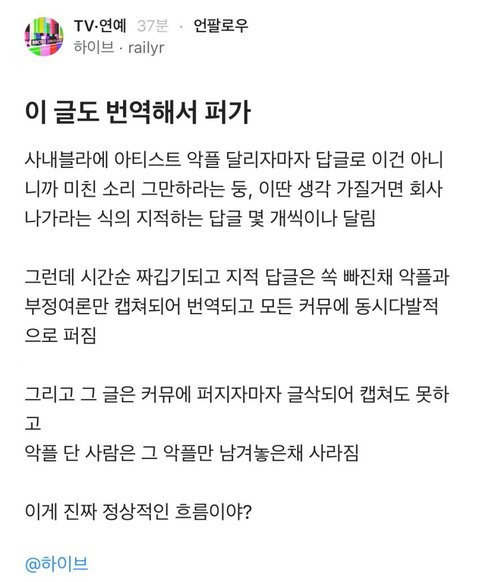 지금 외국 아미들 사이에서도 회사 욕 엄청 나오는 중임