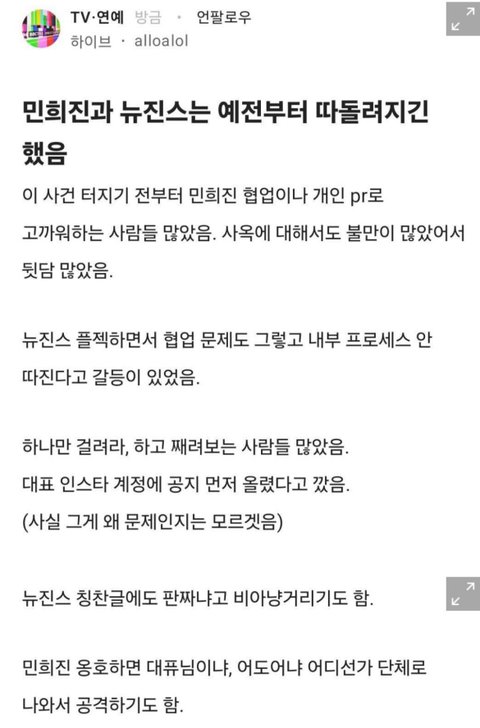 민희진 뉴진스 따돌림 관련 폭로글 봄?