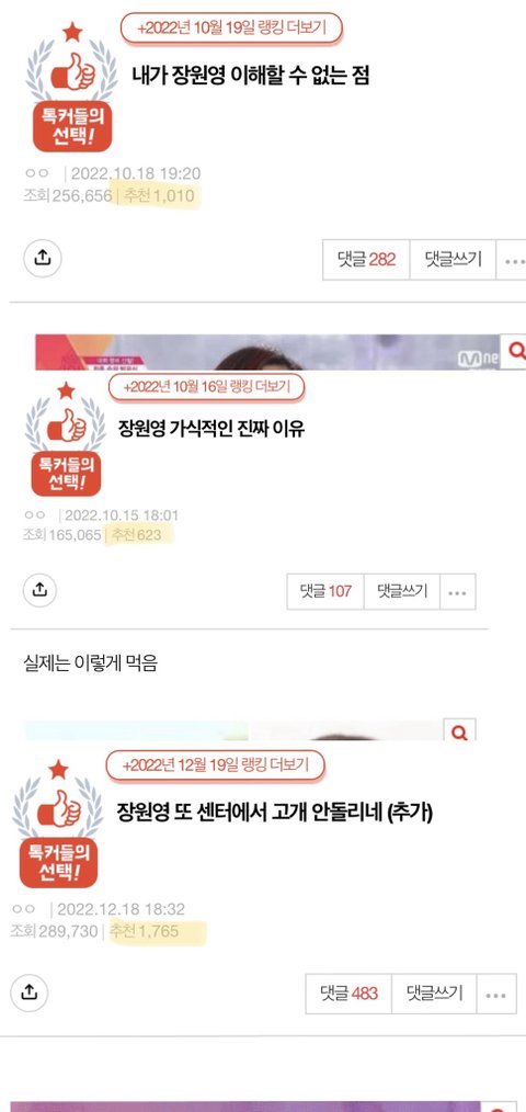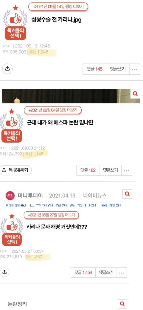 그리고 판에 매일같이 올라오고 추천수는 최소 1000개 이상 눌리는 글들