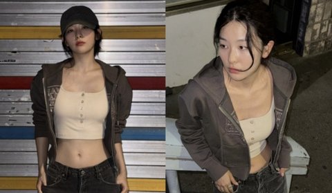 또한, 로우라이즈 바지로 슬기의 잘록한 허리와 배꼽이 강조된 사진에서는 시크한 표정과 함께 반전 매력을 드러냈다. 캡 모자를 눌러쓴 모습으로 시크하면서도 힙한 무드를 연출했다.