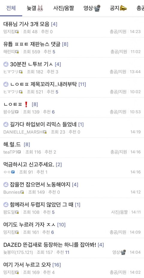 이거는 여론 조작 수준이라 민주주의 국가의 건전한 여론 조성을침해 하는 수준임. 얘네들이 이런식으로 업체 처럼 몰려 다니니까세계의 여론과 유일하게 동 떨어져서 뉴프티를 빠는 나사 빠진 인간들이 많은 거이게 말이 되나? 이런 사이코 집단이 아이돌 팬덤이라 할 수 있나?백번 양보해도 멤버 관련 해서 추천 선동 까지는 이해는 안 되지만 그래도 저런 인간들도 있구나 싶은데 무슨 아이돌 팬덤이란 게 사내이사를 빨겠다고기사 댓글이나 추천 조작질을 하려고 하루 종일 저러고 있는 게 나는 진짜단 한번도 본적 없는 사례임